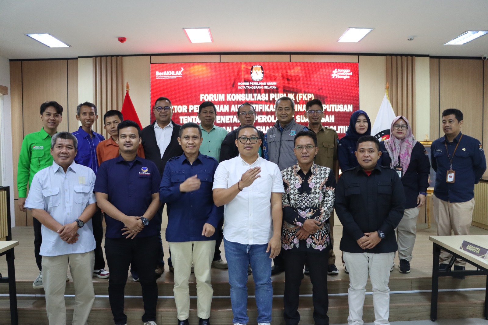 menggelar kegiatan Forum Konsultasi Publik (FKP) Sektor Pelayanan Autentifikasi Salinan Keputusan Tentang Penetapan Perolehan Suara Sah Partai Politik dan Perolehan Kursi Partai Politik Tingkat Kota Tangerang Selatan pada hari Selasa, 11 November 2025 di aula lantai 2 (dua) gedung kantor KPU Kota Tangerang Selatan.