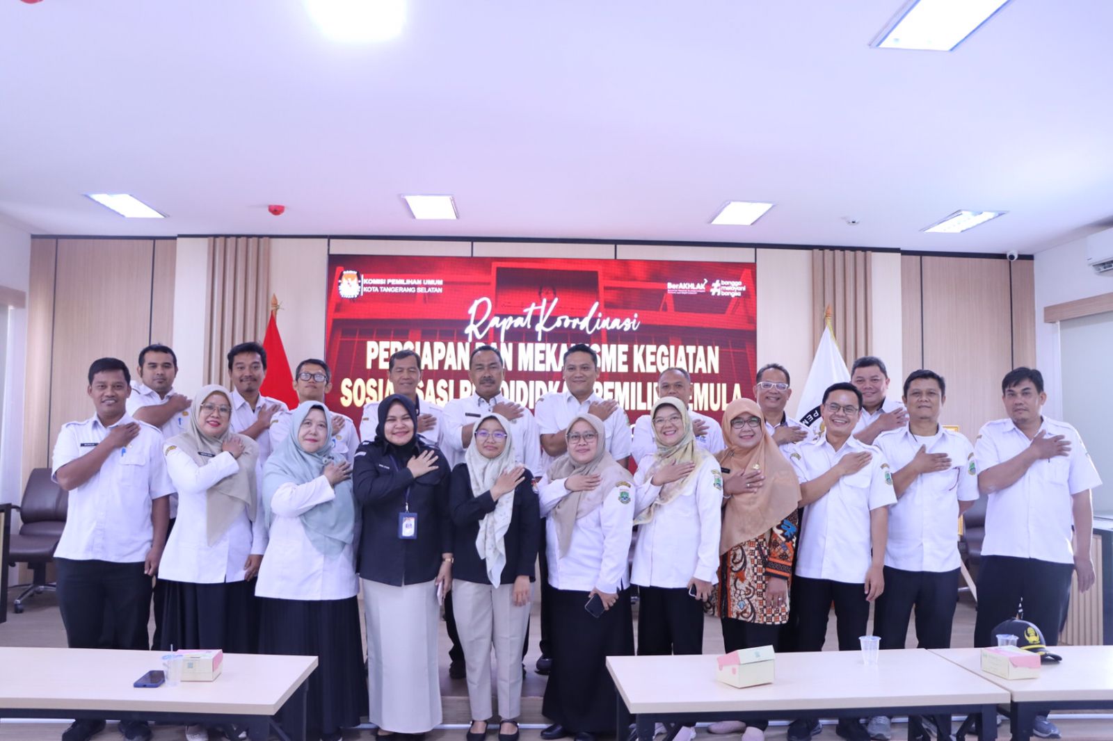 Komisi Pemilihan Umum (KPU) Kota Tangerang Selatan menyelenggarakan kegiatan Rapat Koordinasi Persiapan dan Mekanisme Kegiatan Sosialisasi Pendidikan Pemilih Pemula "Sekolah Jawara Demokrasi" pada Rabu, 26 November 2025 bertempat di aula lantai 2 (dua) Gedung KPU Kota Tangerang Selatan.