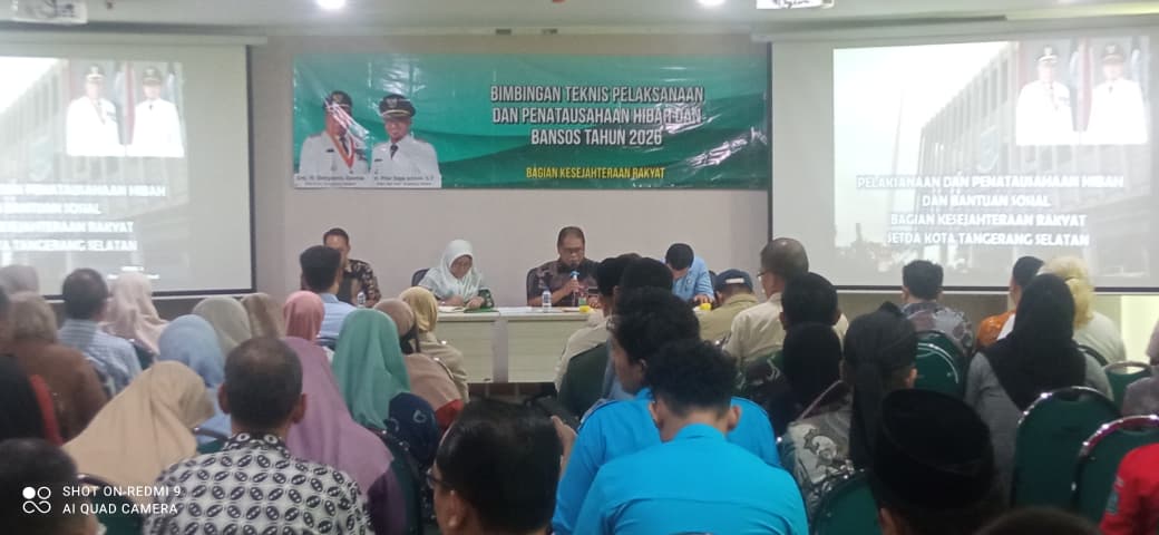 Ketua KPU Kota Tangerang Selatan M Taufiq MZ beserta Sekretaris dan Kasubbag Keuangan, Umum dan Logistik KPU Kota Tangerang Selatan menghadiri kegiatan Bimbingan Teknis Pelaksanaan dan Penatausahaan Hibah dan Bantuan Sosial Tahun 2026 pada Kamis, 12 Februari 2026 bertempat di Balaikota Tangerang Selatan. Bimbingan Teknis ini diselenggarakan oleh Bagian Kesejahteraan Rakyat Sekretariat Daerah Kota Tangerang Selatan.