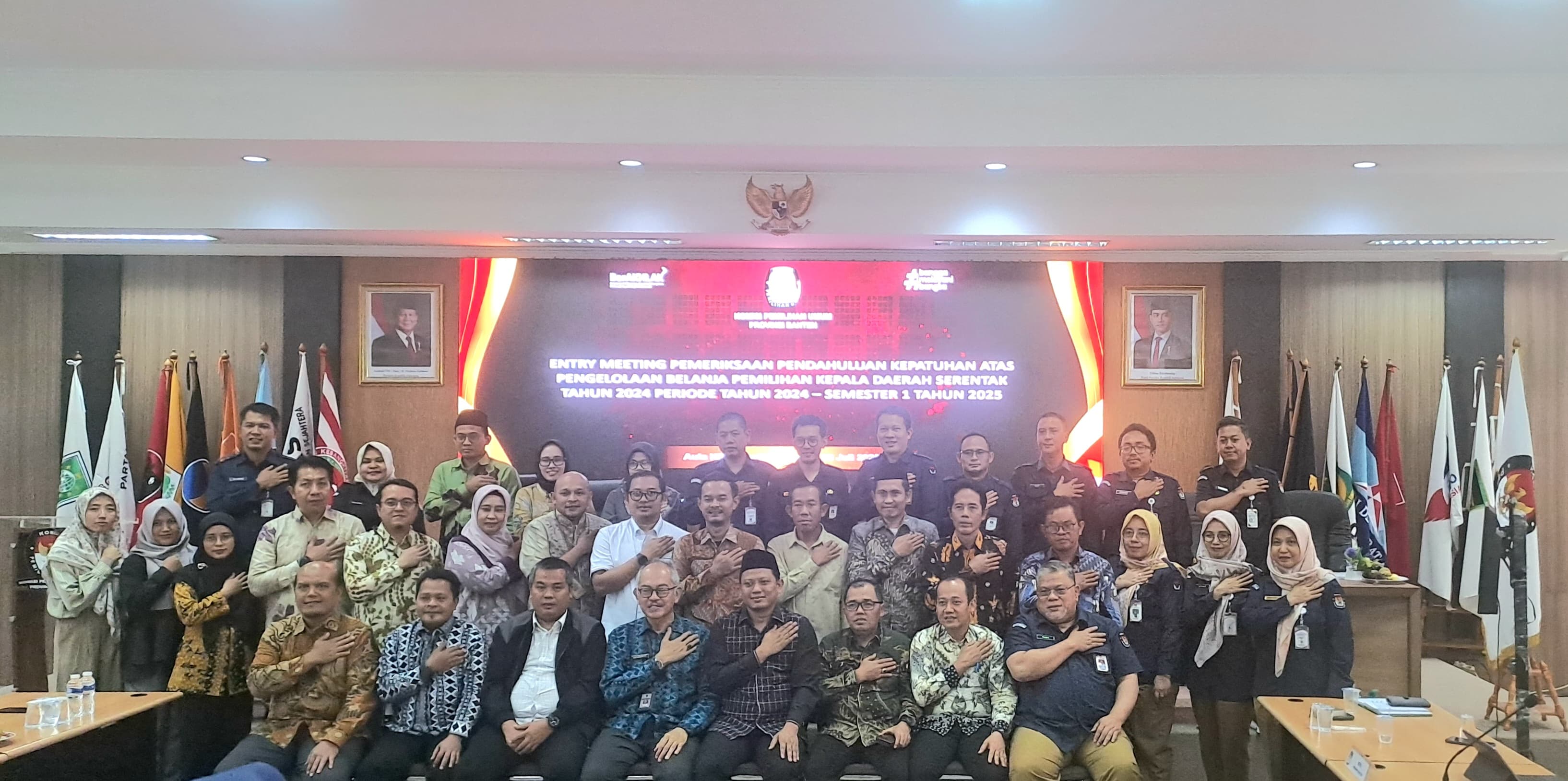 Komisi Pemilihan Umum (KPU) Kota Tangerang Selatan menghadiri Entry Meeting dalam rangka pemeriksaan pendahuluan atas kepatuhan pengelolaan belanja Pemilihan Kepala Daerah (Pilkada) Serentak Tahun 2024 untuk periode Tahun 2024 - Semester I Tahun 2025, yang digelar oleh KPU Provinsi Banten bersama Badan Pemeriksaan Keuangan (BPK) pada Selasa, 22 Juli 2025 di aula KPU Provinsi Banten.
