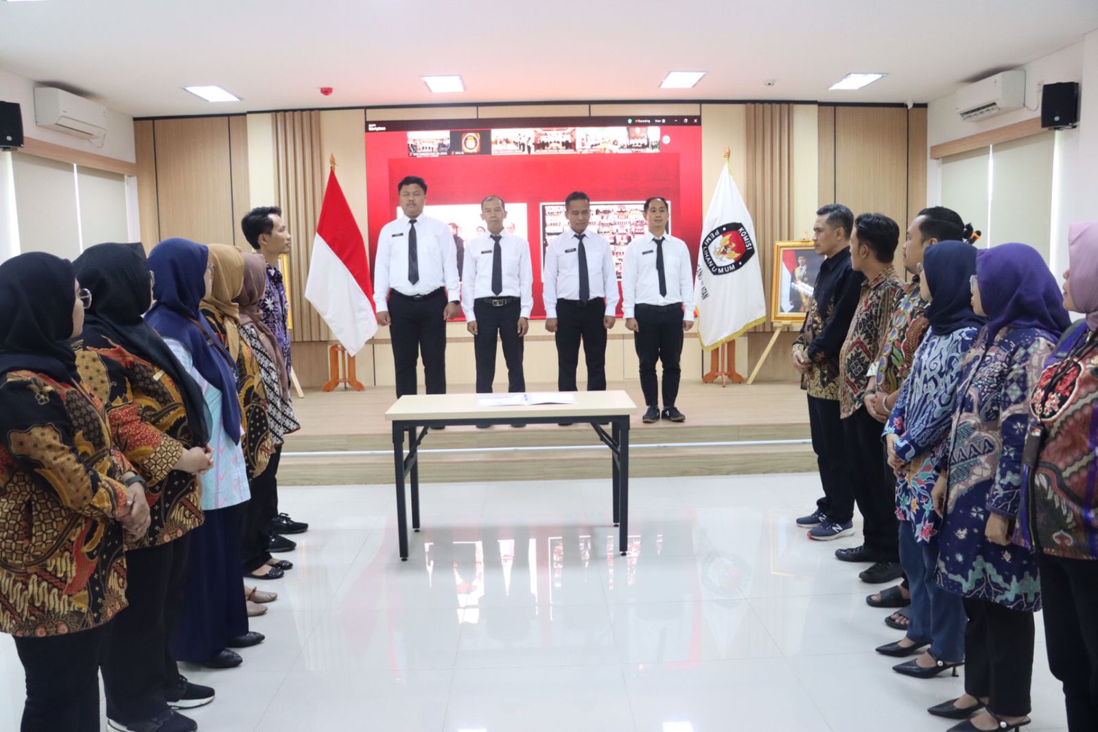 Tangerang Selatan Komisi Pemilihan Umum (KPU) Kota Tangerang Selatan mengikuti pengambilan sumpah/janji pegawai pemerintah dengan perjanjian kerja dilingkungan sekretariat jenderal Komisi Pemilihan Umum Tahun 2024 periode I, yang di laksanakan melalui zoom meeting oleh KPU RI, Jumat(23/05/25).
