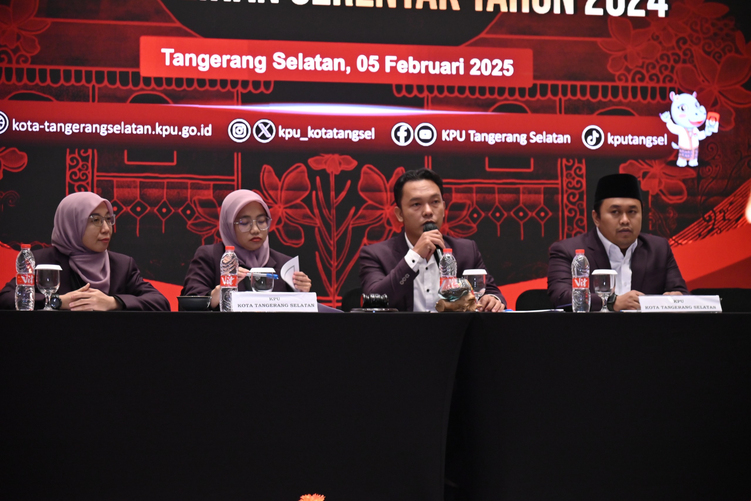 Komisi Pemilhan Umum Kota Tangerang Selatan- Rabu (5/2/25) KPU Kota Tangerang Selatan Menggelar Rapat Pleno Terbuka Penetapan Pasangan Calon Walikota dan Wakil Walikota Terpilih dalam Pemilihan Walikota dan Wakil Walikota Tangerang Selatan di Hotel Trembesi BSD Kota Tangerang Selatan. kegiatan dilaksanakan pukul 16.00 WIB dan dihadiri oleh Pasangan Calon Terpilih Bapak Drs. Benyamin Davnie dan Pilar Saga Ichsan, ketua DPRD Kota Tangerang Selatan, Kejaksaan Negeri Kota Tangerang Selatan, Kesbangpol Kota Tangerang Selatan, Kapores Kota Tangerang Selatan, dan Pimpinan Partai Politik Tingkat Kota Tangerang Selatan.