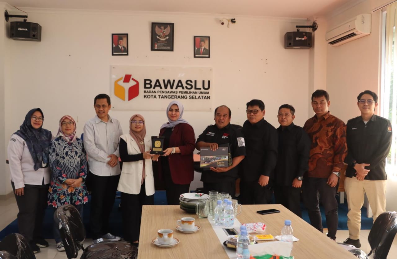 ada hari Kamis (12/06/2025) Ketua KPU Kota Tangerang Selatan M Taufik MZ, Ketua Divisi SDM dan Parmas Heni Lestari, Ketua Divisi Perencanaan, Data dan Informasi Widya Victoria M, Kasubbag Perencanaan Data dan Informasi Firsa Gemilang beserta Staf KPU Kota Tangerang Selatan melaksanakan silaturahmi dan bersinergi dalam kelembagaan beserta pemberian potret kaleidoskop KPU Kota Tangerang Selatan dalam pemilihan serentak Tahun 2024 di gedung Bawaslu Kota Tangerang Selatan