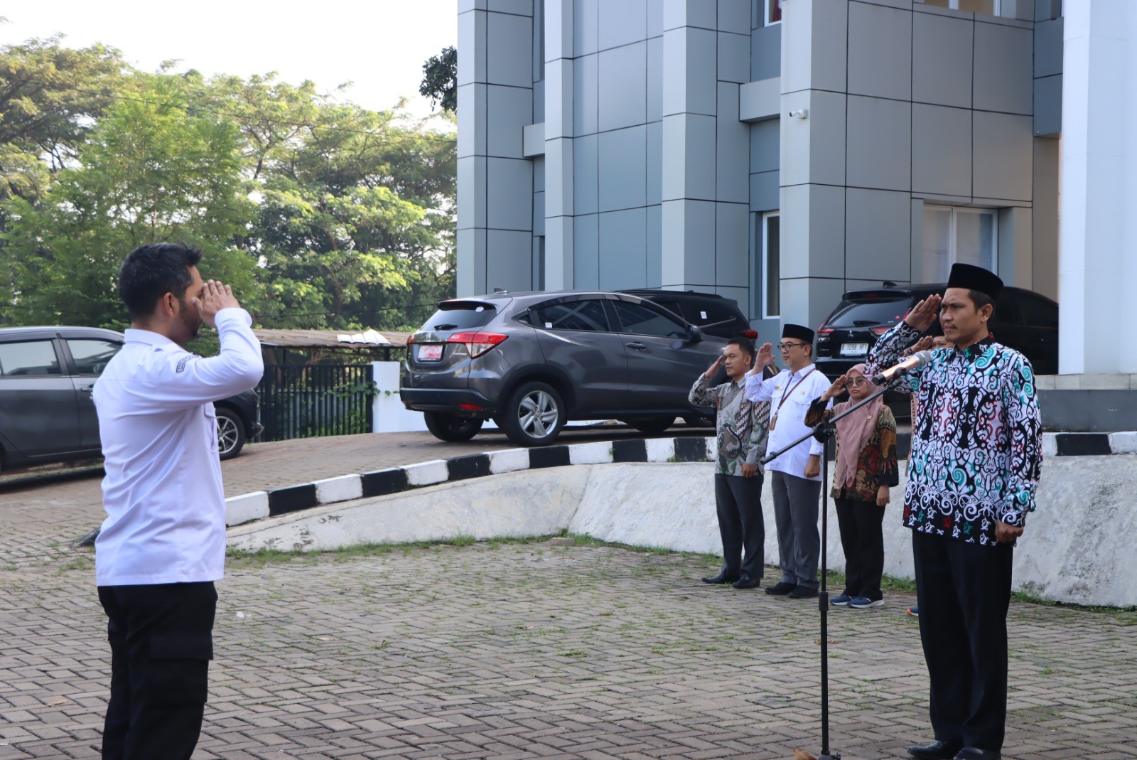 Ketua KPU Kota Tangerang Selatan M Taufiq MZ menjadi inspektur upacara peringatan hari lahir pancasila tahun 2023 di lingkungan KPU Kota Tangerang Selatan, Kamis (1/6/2023)