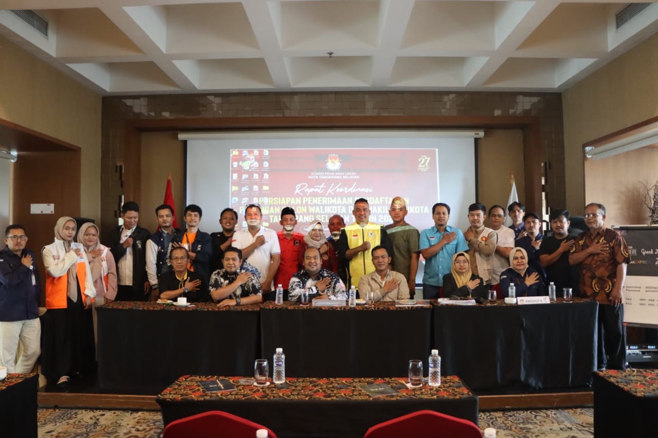 KPU Kota Tangerang Selatan menggelar Rapat Koordinasi Persiapan penerimaan Pendaftaran Calon Walikota dan Wakil Walikota Tangerang Selatan tahun 2024, Grandzuri Hotel, Serpong, Sabtu (24/08/24).