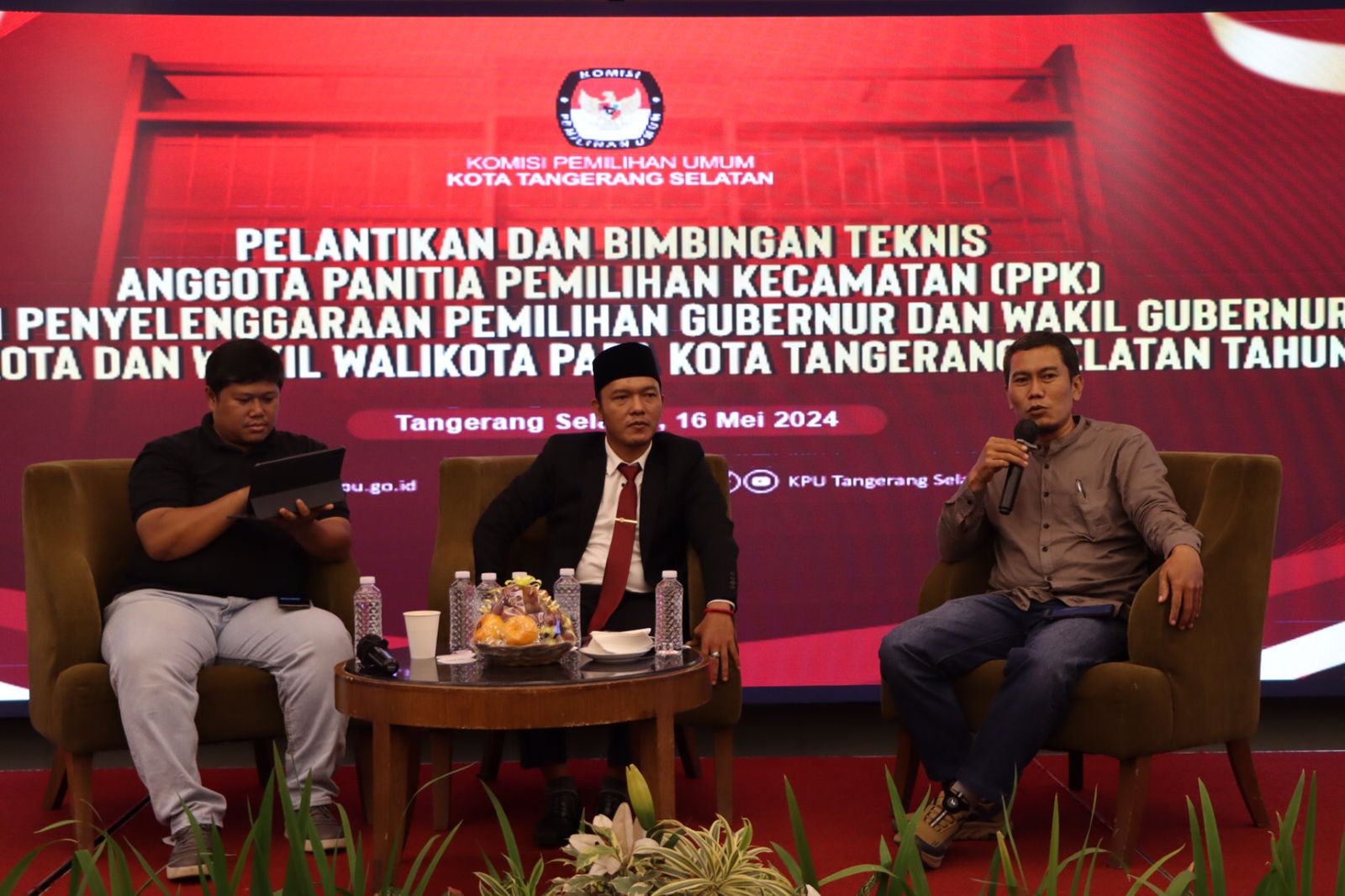 KPU Kota Tangerang Selatan melaksanakan Pelantikan Anggota Panitia Pemilihan Kecamatan (PPK) dalam penyelenggara Pemilihan Gubernur dan Wakil Gubernur serta Walikota dan Wakil Walikota Tangerang Selatan tahun 2024, Hotel Grand Zuri, Serpong(16/05/2024).