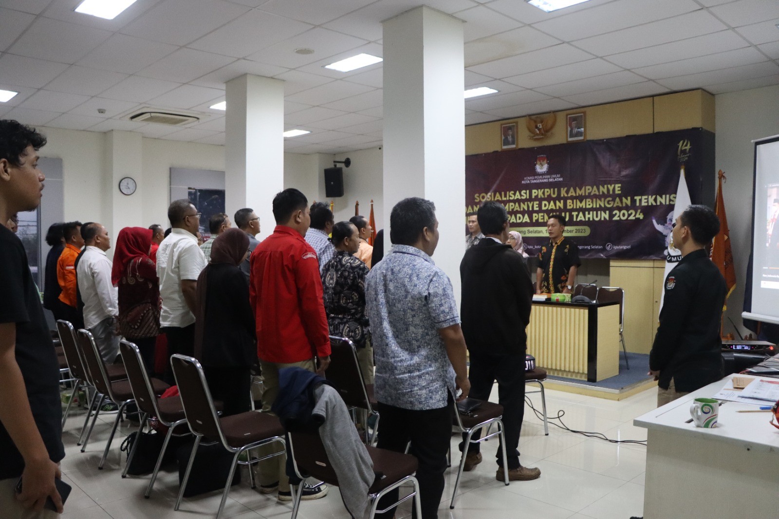 Acara di mulai pukul 16.00 WIB, acara dibuka oleh ketua KPU Kota Tangerang Selatan M Taufiq MZ dan dilanjutkan dengan penyampaian matahari oleh anggota KPU Kota Tangerang Selatan Ajat Sudrajat dengan materi kebijakan dana kampanye tahun 2024. Dan dilanjutkan dengan materi anggota KPU Heni Lestari dengan materi kebijakan kampanye pada Penilihan Umum Tahun 2024.