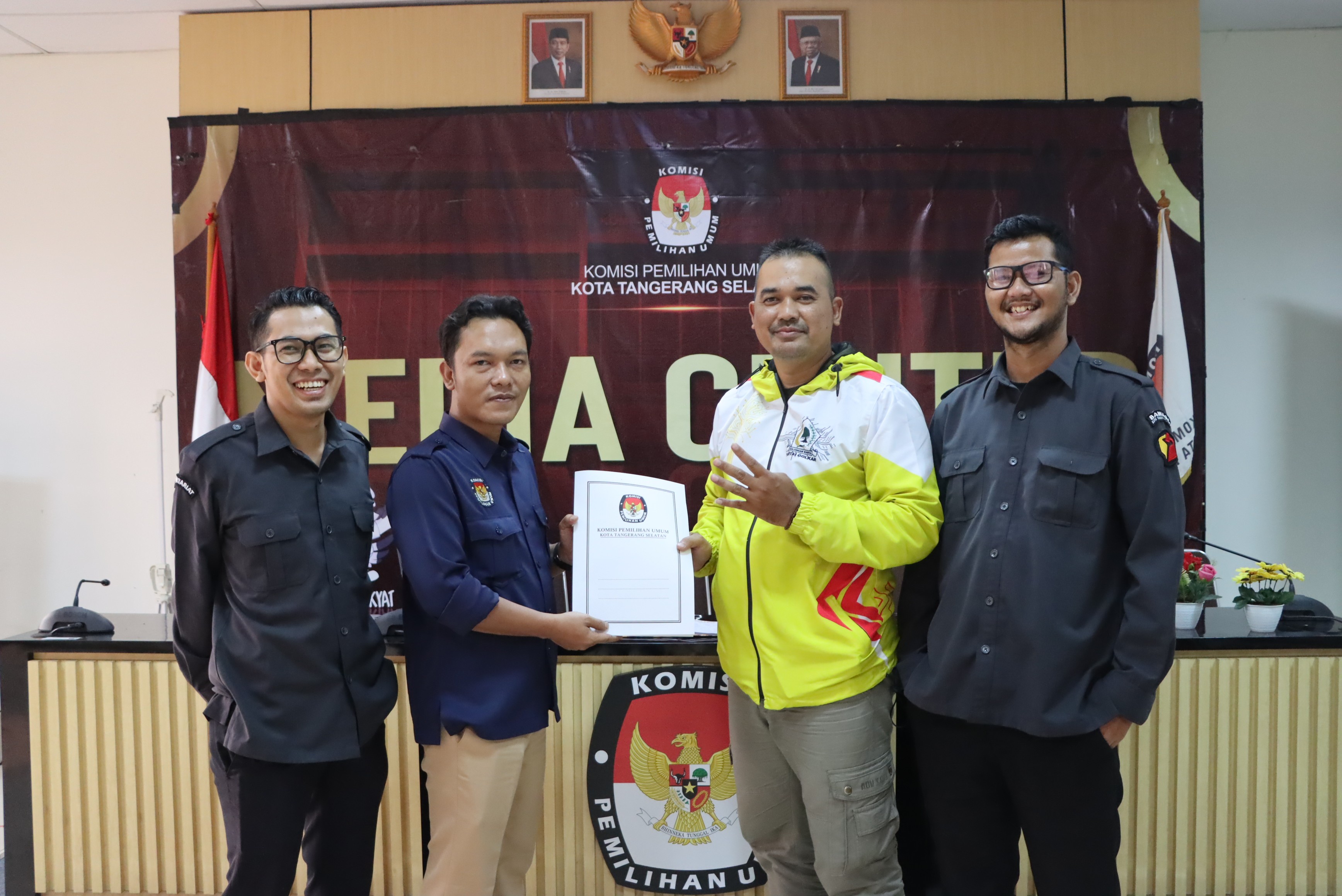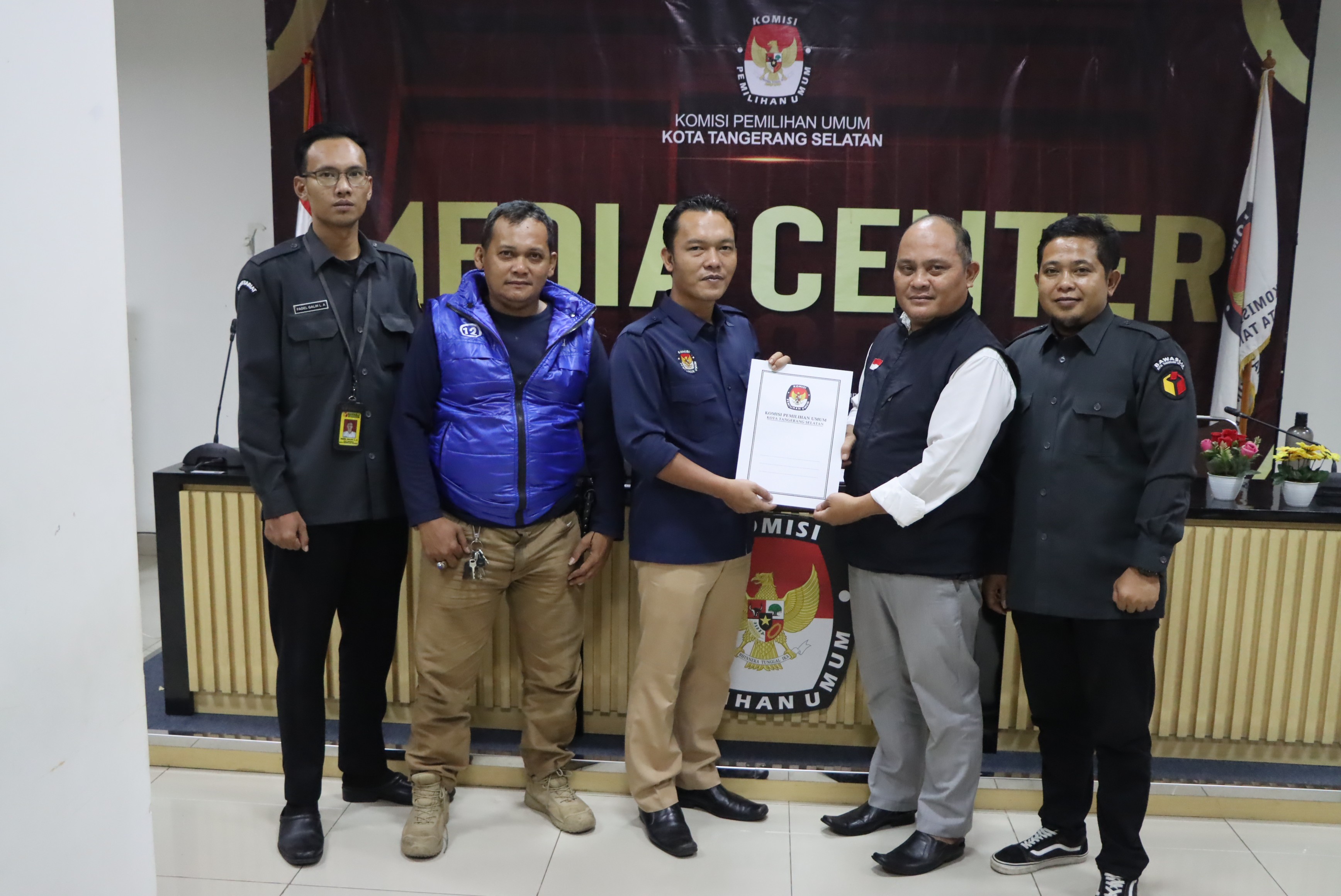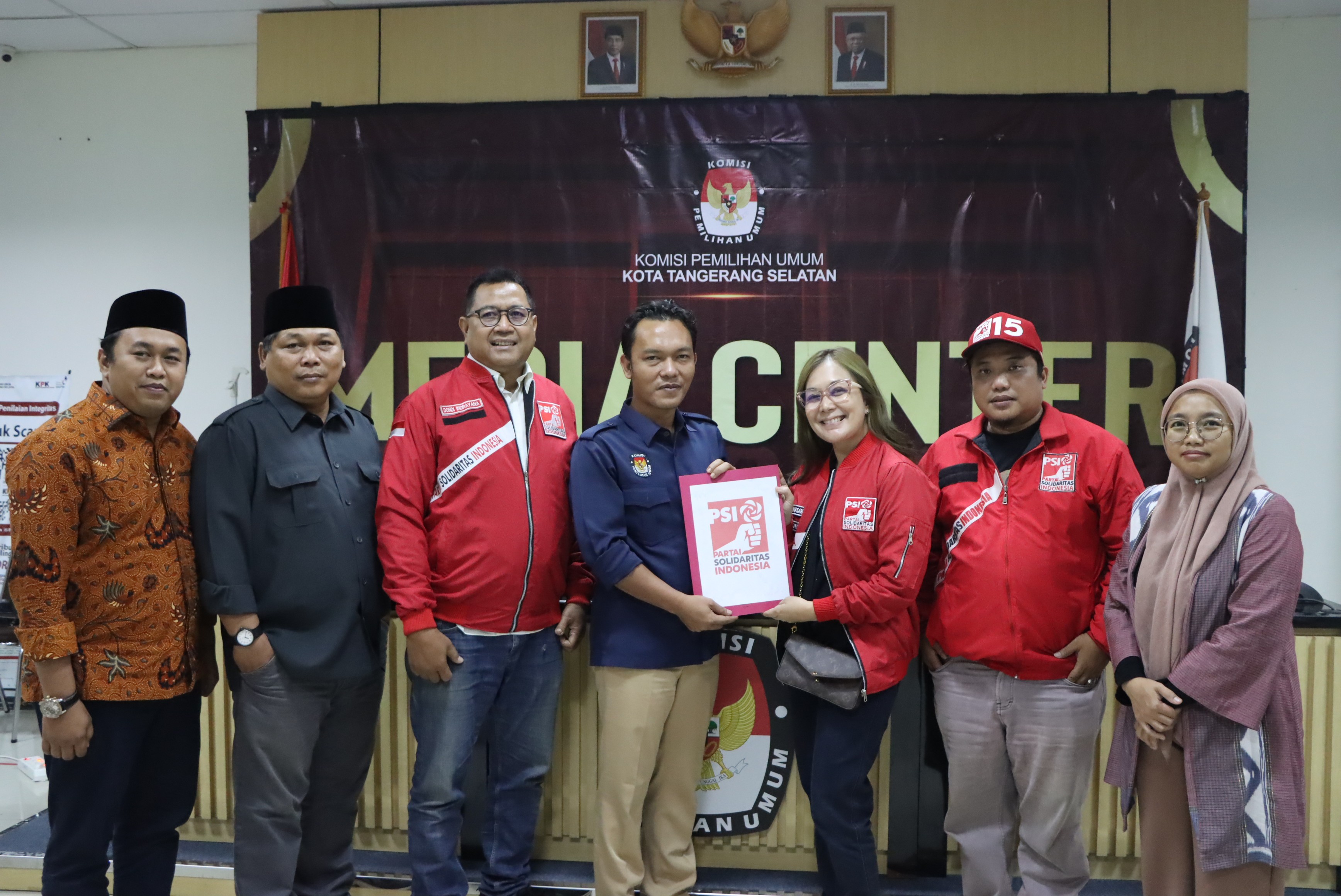 Berkas diterima langsung oleh Anggota KPU Kota Tangerang Selatan Ajat Sudrajat yang diserahkan oleh pengurus Partai Solidaritas Indonesia (PSI) Tingkat Kota Tangerang Selatan.