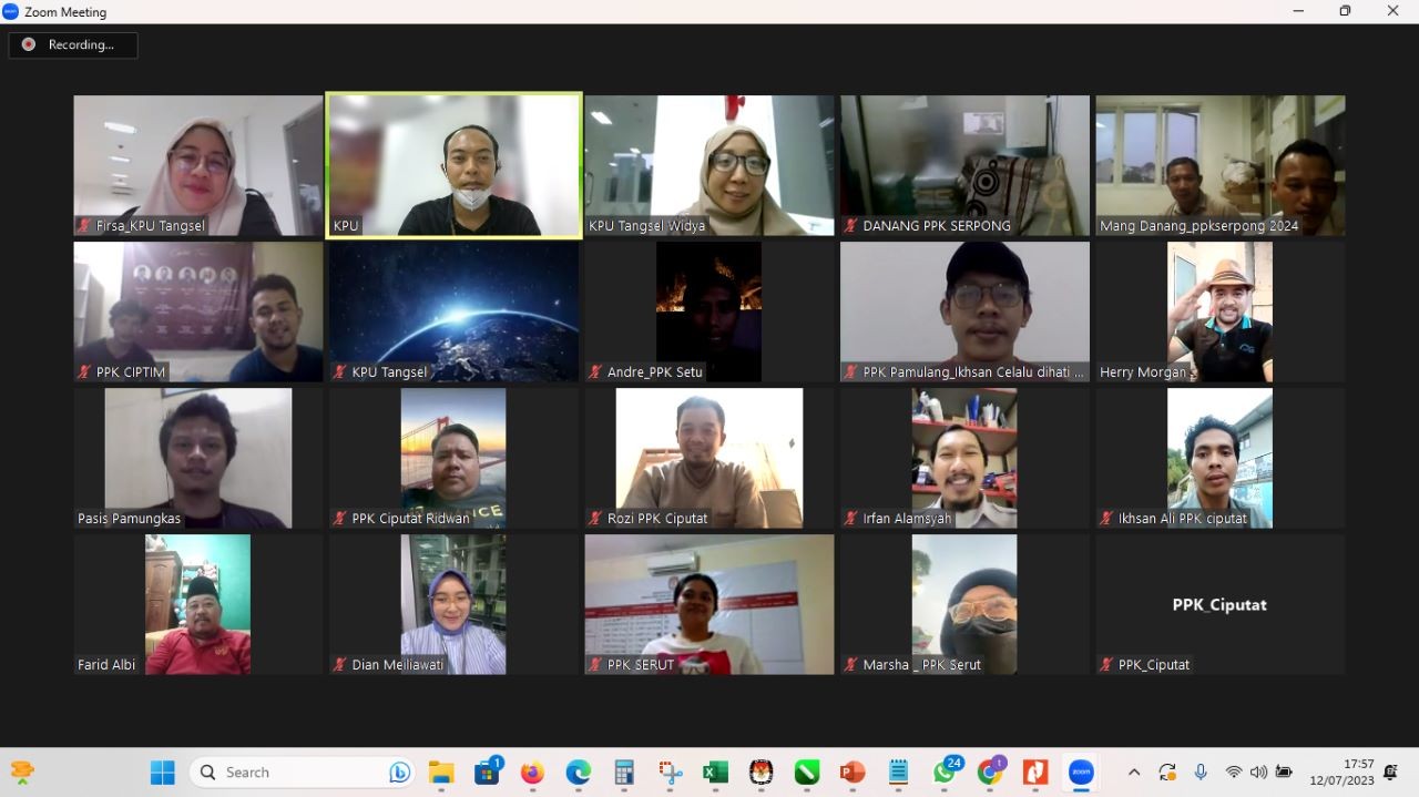 Hadir dalam kegiatan Ketua KPU Provinsi Banten, Mohamad Ihsan, Anggota KPU Provinsi Banten, Akhmad Subagja, Ahmad Suja'i, M Agus Muslim, beserta jajaran Kabag, Kasubag, Operator, dan Pelaksana di Sekretariat KPU Provinsi Banten serta diikuti oleh Anggota Divisi Teknis Penyelenggaraan, Kasubag Tekparmas, dan Operator KPU Kabupaten/Kota se Provinsi Banten.