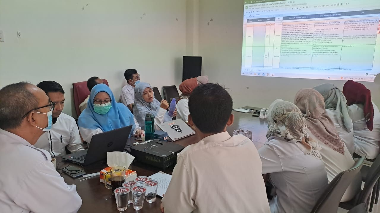 Kantor Komisi Pemilihan Umum (KPU) Tangsel, Anggota KPU Kota Tangerang Selatan Ade Wahyu Hidayat dan Heni Lestari menghadiri Rapat Koordinasi Camat dn Lurah Se-Kota Tangerang Selatan, selasa (12/7).