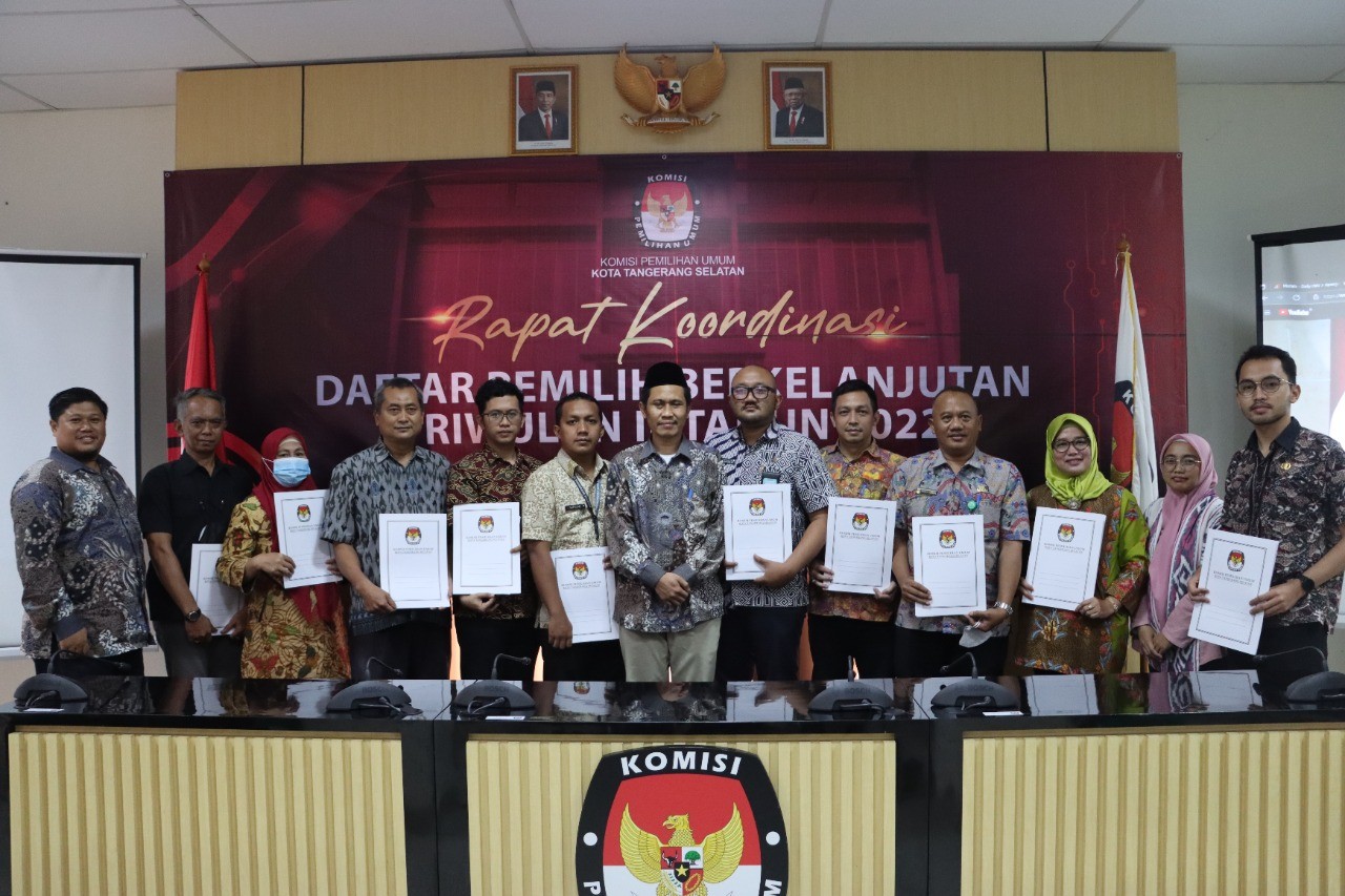 Kamis(30/06), Komisi Pemilihan Umum Kota Tangerang Selatan telah melaksanakan Rekapitulasi Pemutakhiran Daftar Pemilih Berkelanjutan (PDPB) Triwulan II Tahun 2022, Kamis (30/6). Penetapan Rekapitulasi Pemutakhiran Daftar Pemilih Berkelanjutan berdasarkan ketentuan Peraturan Komisi Pemilihan Umum Nomor 6 Tahun 2021 perihal Pemutakhiran Data Pemilih Berkelanjutan. Berdasarkan Berita Acara Rekapitulasi Pemuktahiran Daftar Pemilih Berkelanjutan Triwulan II Tahun 2022 KPU Kota Tangerang Selatan nomor 27/PK.01-BA/3674/2022 tanggal 30 juni Tahun 2022 tentang Rekapitulasi yang ditandatangani oleh kelima Komisioner KPU Kota Tangerang Selatan, dengan jumlah 992.216 pemilih, dengan rincian pemilih laki-laki berjumlah 488.412 pemilih dan pemilih perempuan berjumlah 503.804 Pemilih. Data tersebut tersebar di 7 Kecamatan dan 54 Desa/Kelurahan yang ada di Kota Tangerang Selatan. Adapun sumber data tersebut diperoleh dari masukan/tanggapan dari Kementrian Dalam Negeri Republik Indonesia, Bawaslu Kota Tangerang Selatan, Polres Kota Tangerang Selatan, Polres Metro Tangerang Kota, Kementrian Agama Kota Tangerang Selatan, Dinas Sosial Kota Tangerang Selatan, Dinas Perumahan, Kawasan Permukiman dan Pertanahan Kota Tangerang Selatan dan Tanggapan Masyarakat. Datang langsung ke “Posko Layanan Pemilih DPB Kota Tangerang Selatan” yang beralamat di Jl. Raya Serpong No. 1 Kel. Setu Kec. SetuKota Tangerang Selatan, Banten, setiap hari di jam kerja. Melaporkan data secara online melalui link https://sipangsi.id Atau dapat menghubungi melalui sipangsicorner di nomor WA 0813-3306-6538 (http://bit.ly/sipangsicorner) Berikut Rekapitulasi Daftar Pemilih Berkelanjutan (DPB) Triwulan II tahun 2022 tingkat Kota Tangerang Selatan, dapat dilihat melalui link : Berita Acara Rekapitulasi DPB Triwulan II 2022 https://bit.ly/BeritacaraDPBtriwulanIItingkatkotatangerangselan