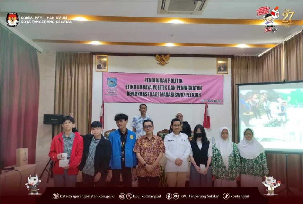 Hadir sebagai narasumber dalam kegiatan tersebut, Didik Hariyanto dan Agus Supatmo. Kegiatan sosialisasi ini dalam rangka mensosialisasikan tahapan dan jadwal kegiatan pemilihan Gubernur dan Wakik Gubernur, Walikota dan Wakik Walikota Tangerang Selatan tahun 2024.