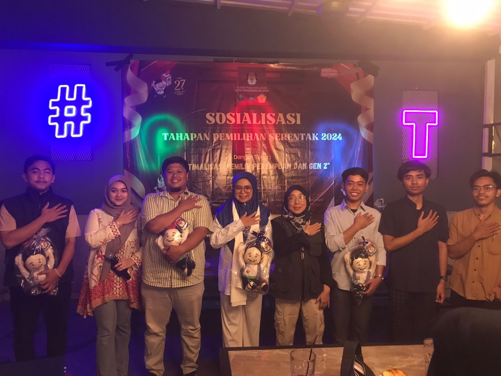 Anggota KPU Kota Tangerang Selatan Heni Lestari hadir dalam acara sosialisasi dan pendidikan pemilih bersama Kurva Komunika Sabtu (27 /07/24) di Gerak Gerik Caffe & Bookstore, Pisangan, Kec Ciputat Timur Kota Tangerang Selatan.