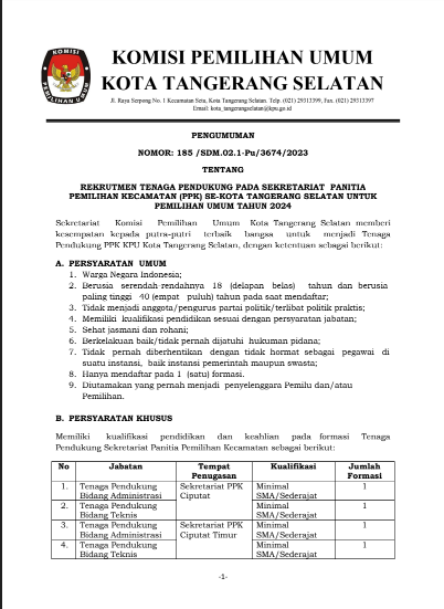Pengumuman Seleksi Administrasi Tenaga Pendukung Sekretariat PPK