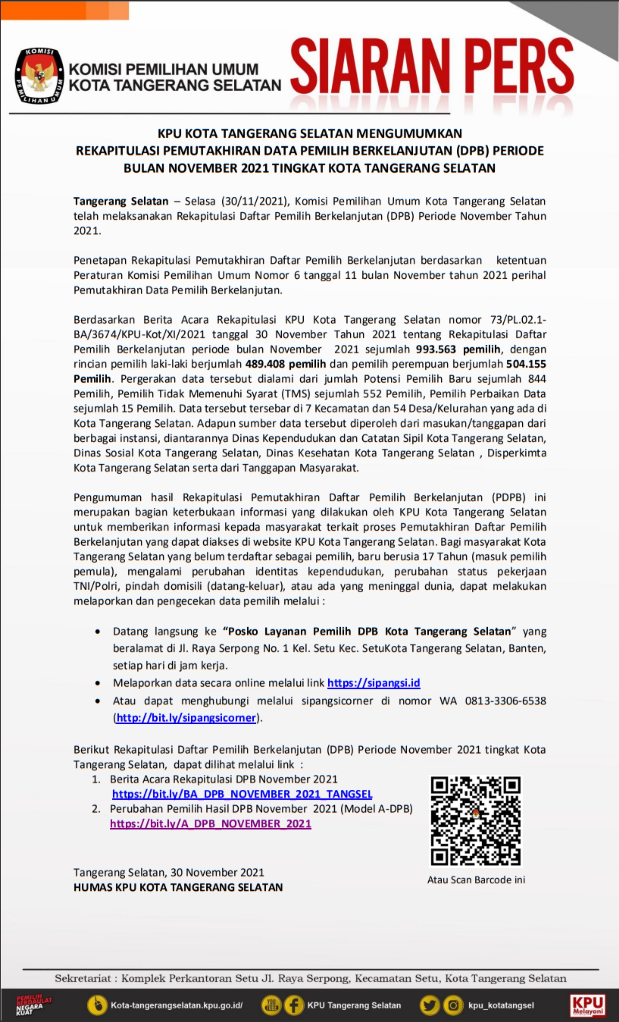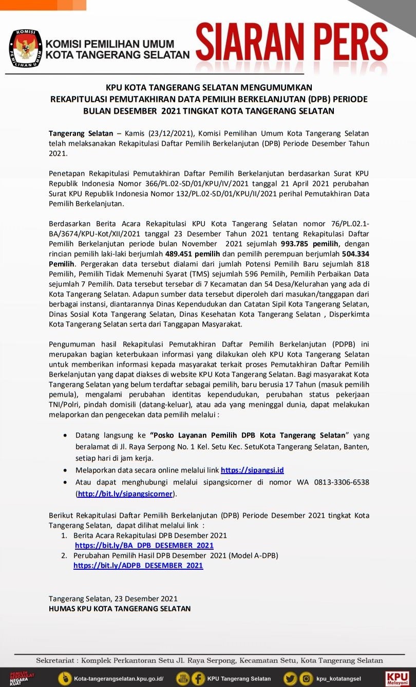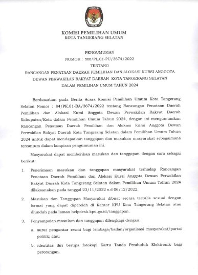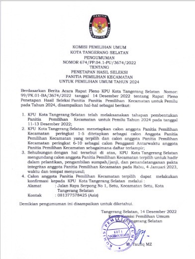 Umum Serentak Tahun 2024, Komisi Pemilihan Umum Kota Tangerang