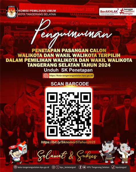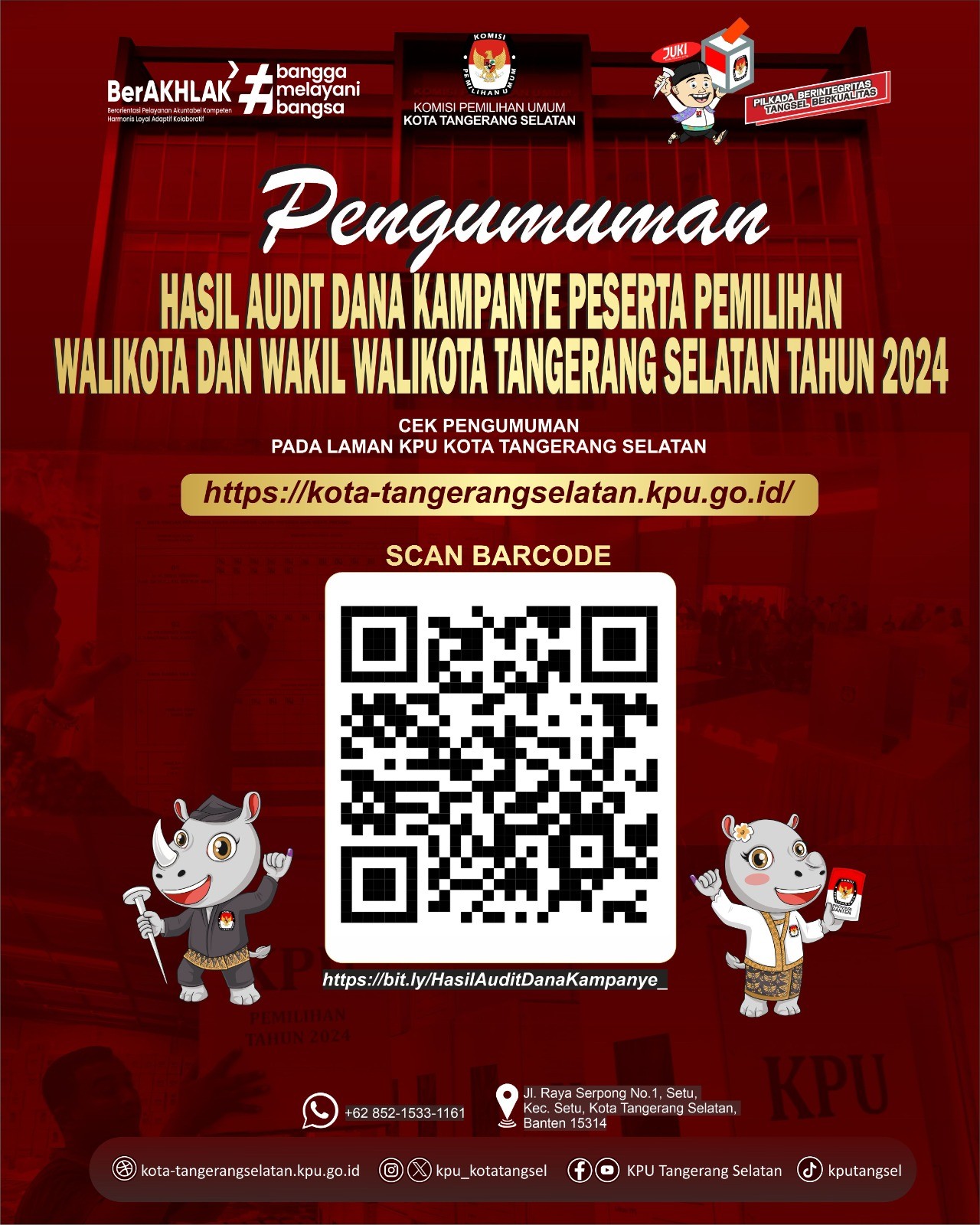 atau datang langsung ke Kantor KPU Kota Tangerang Selatan dengan Alamat Jl. Raya Serpong No.1, Setu, Kec. Setu, Kota Tangerang Selatan, Banten 15314