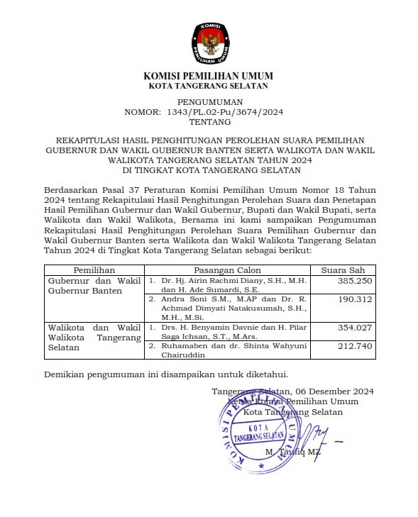 "PILKADA BERINTEGRITAS, TANGSEL BERKUALITAS"