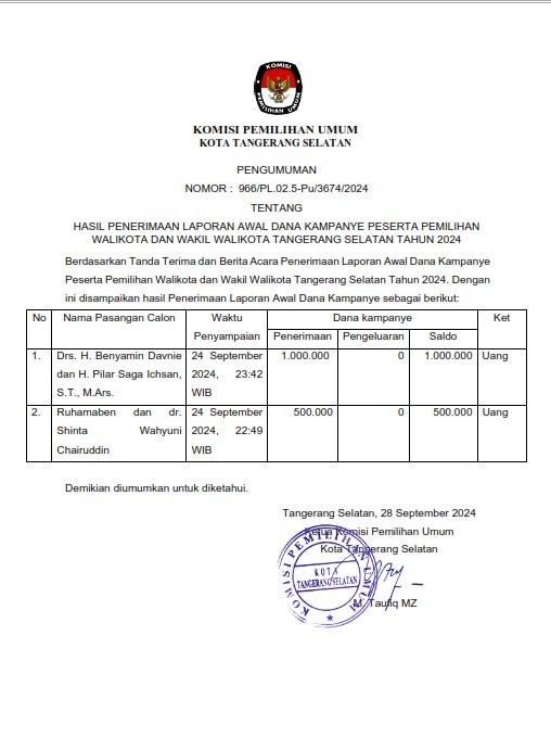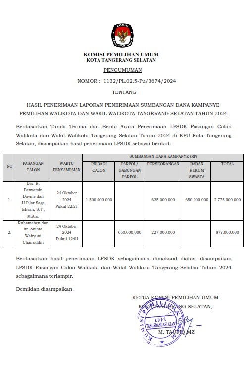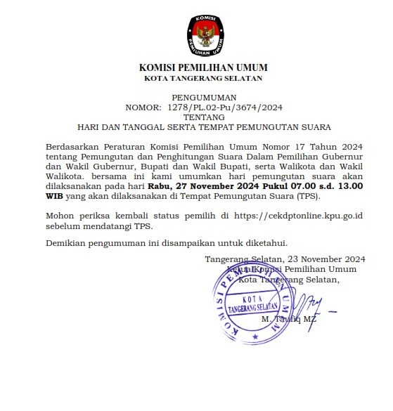 ? Tempat: KPU Kota Tangerang Selatan, Jl. Raya Serpong No.1, Setu, Kec. Setu, Kota Tangerang Selatan, Banten 15314